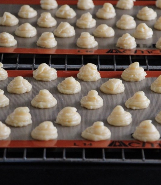 Avant de démarrer la recette, il est nécessaire d’apporter une petite précision : le pochage est particulièrement important pour obtenir une forme régulière et généreuse de votre gougère. Pour les gougères au fromage, je recommande la douille unie diamètre 10, et pour les gougères au chorizo ou autre élément solide, je recommande d’utiliser la douille unie diamètre 12 ainsi que la poche pâtissière en polyuréthane de De Buyer. Cette dernière résistera bien à la température de votre préparation au moment du pochage et permet une bonne prise en main. Avoir une super recette nécessite d’avoir un super matériel …