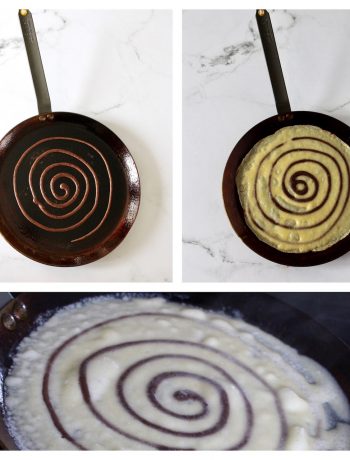 Je m’arrête sur ce point un instant pour vous parler des poêles à crêpes en acier et plus spécifiquement de la poêle Minéral B par De Buyer. Vous connaissez mon enthousiasme pour cette marque et la qualité de ses produits.