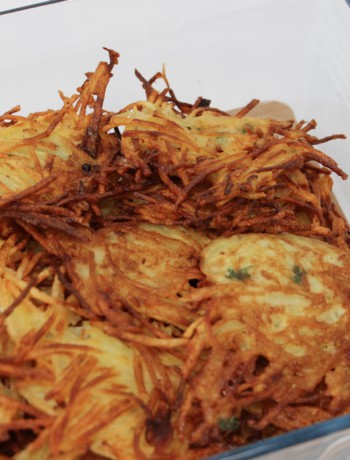 Je ne résiste pas au plaisir de vous donner le petit nom de ces galettes de pommes de terre en alsacien : les grumbeere kiechele !!! Allez !! On se lance dans un petit exercice de prononciation ?? « Grumbeere » veut dire pomme de terre et « Kiechele » petit gâteau.
