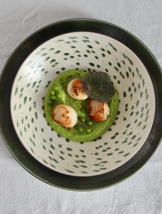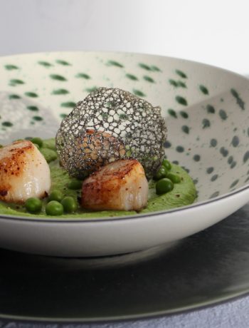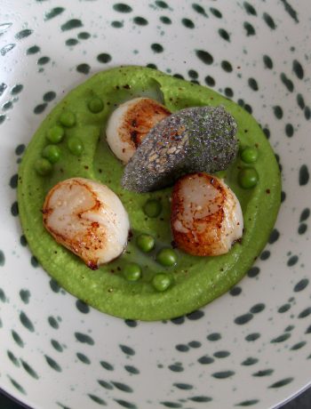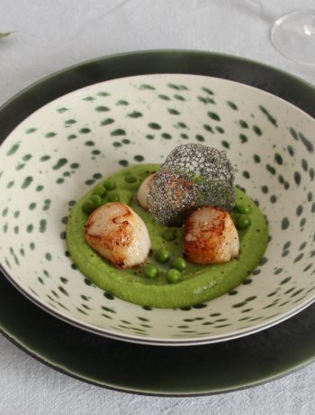 Cette recette de noix de St Jacques et purée de petits pois fera un très bel effet sur vos tables de fêtes. Avec ce vert éclatant, on est pile poil dans le code couleur de Noël, non ? Et maintenant, la question que vous devez tous vous poser : c’est compliqué à faire ? Et ben non !! Au contraire ! Cette recette est franchement simple et rapide en plus… On en redemande, non ?