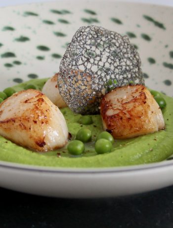 J’oublie presque l’essentiel : c’est délicieux. Le mariage de la douceur des petits pois, du croquant de la tuile et des saveurs de la St Jacques en feront un plat apprécié de tous. Je propose 3 noix de St Jacques en format entrée. En plat principal, prenez-en 5 ou 6 selon la taille.
