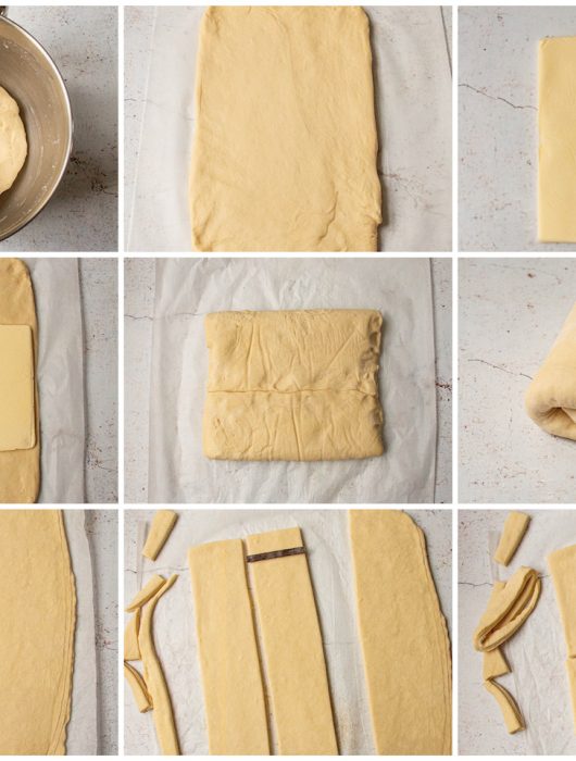 J’ai utilisé la recette de Cédric Grolet, arrangée un peu pour une réalisation non professionnelle. Ce n’est pas particulièrement compliqué, c’est un peu comme réaliser une pâte feuilletée. Il faudra simplement prendre votre temps, bien lire les étapes de la recette avant de vous lancer et ça devrait le faire !
