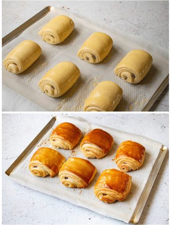 Badigeonnez vos pains au chocolat sans mettre de dorure sur les bords.