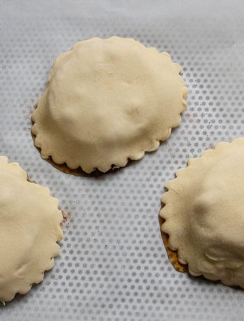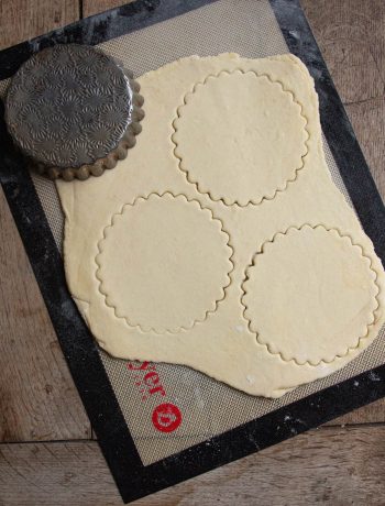 Ma recommandation concernant la pâte feuilletée est de la travailler très froide. N’hésitez pas à la passer quelques minutes au congélateur. Aussi, pour avoir une belle découpe de vos disques de pâte, et du coup ne pas gâcher le feuilletage, il vous faudra un couteau avec une lame bien tranchante ou un emporte-pièce également bien coupant. Après, c’est du super simple !