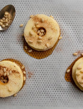 Côté ingrédients, je le disais, ces tartelettes express pommes, pignons de pin et pistache ne nécessitent pas grand-chose… Vous pourrez remplacer le sirop d’érable par du miel. De même, vous pourrez remplacer les pignons de pin et les pistaches par ce que vous avez sous la main : pralin, noisettes hachées, amandes, noix de macadamia et même des pépites de chocolat !