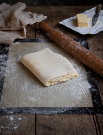 Il était donc temps que je vienne ajouter une nouvelle recette dans la catégorie « salé » ! Je vais donc vous en dire plus sur ma tarte Tatin aux tomates cerises… On va tout d’abord préparer une pâte feuilletée. Je vous recommande vraiment de faire vous-même votre pâte feuilletée. Il y a peu d’ingrédients dans cette recette, il est donc important qu’ils soient tous de bonne qualité. Vous aurez le choix : soit ma pâte feuilletée minute (celle utilisée ici) qui a un bon goût de beurre et qui se prépare en très peu de temps, soit la recette plus traditionnelle qui est encore meilleure mais qui nécessite plusieurs étapes de réalisation et des temps de pause conséquents.