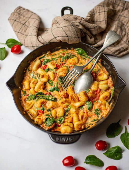 Comme souvent chez moi, il y a une histoire, ou du moins une explication, à chaque recette. Ces gnocchis crémeux au Boursin et Tomates n’y font pas exception…
