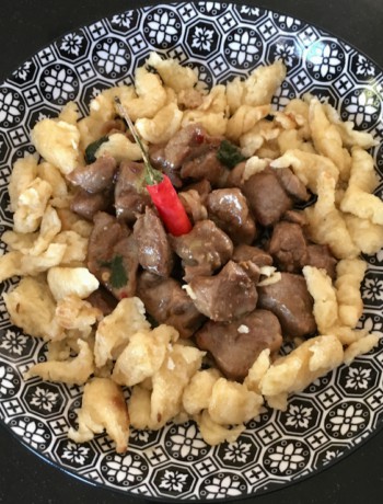 Vous pourrez servir ce plat avec du riz bien évidemment. A l’époque, je l’ai mangé avec de petites pâtes agrémentées d’une sauce tomate elle aussi très épicées. Ça m’a donnée l’idée d’associer mon agneau ouïghour au cumin avec des spaetzles !! Quand la Chine rencontre l’Alsace !!