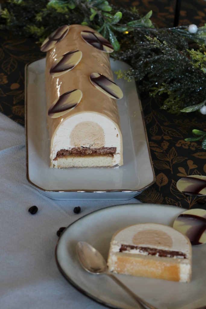 Let me introduce my coffee and almond praline crémeux yule log! Tadaaa!!