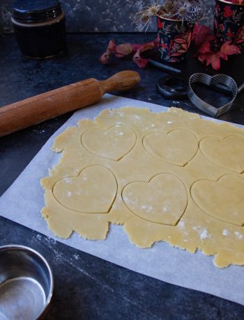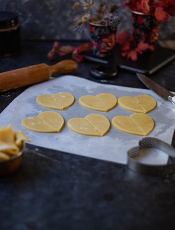 Étalez la pâte bien froide, faites des coeurs à l'emporte-pièce.