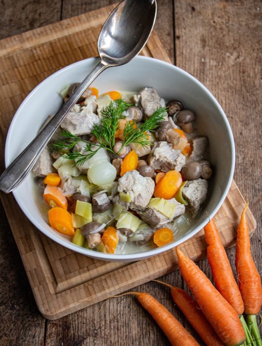 Vos recettes sucrées m’accompagnent au quotidien mais ça faisait longtemps que je n’en avais pas fait une salée. C’est parti pour la blanquette.