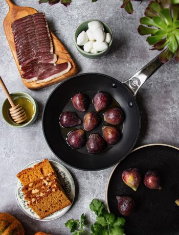 Ajoutez les figues coupées en deux, face contre la poêle. Nappez avec le miel.