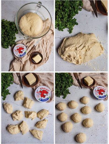 Récupérez votre pâte sur le plan de travail et découpez 10 pâtons de même poids.