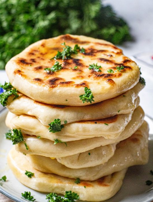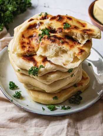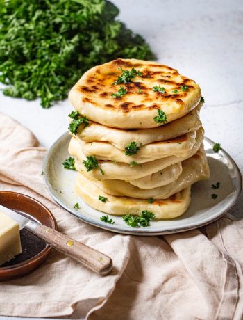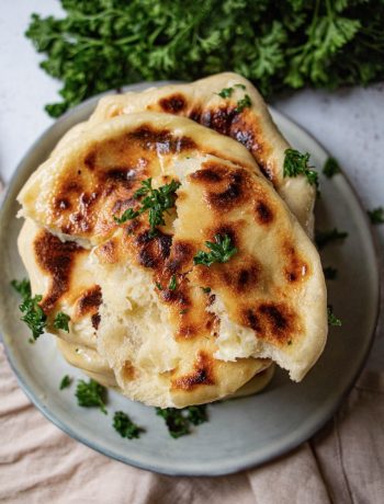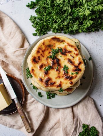 Badigeonnez vos cheese naans bien chauds de beurre fondu mélangé avec le persil finement ciselé.