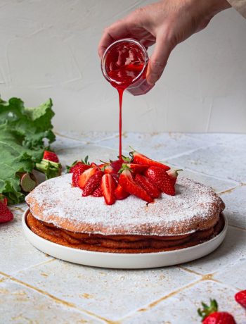 Je profite toujours à fond de la période de la rhubarbe. Je suis vraiment fan… Et, comme vous le savez probablement déjà, l’association avec la fraise fonctionne à merveille. C’est donc naturellement que s’est dessinée cette nouvelle recette dans ma petite tête…
