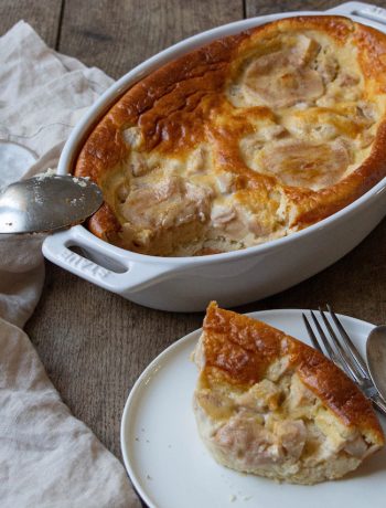 Cette recette est tout simplement déclinée de mon clafoutis aux cerises, une recette très appréciée ! En même temps, ça se comprend, c’est une recette de Christophe Felder, une référence de la pâtisserie ! Et en plus il est alsacien, c’est forcément un gage de qualité !! 😉