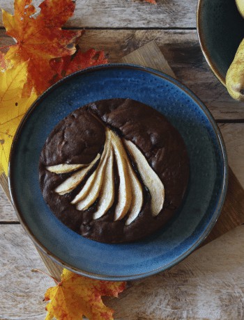 Parfois, j’ai des idées bizarres … Je vous raconte un peu ma vie là, mais pour cette recette, je suis partie de l’élément de décoration (ma demi-poire en éventail …) et j’ai construit ma recette autour …
