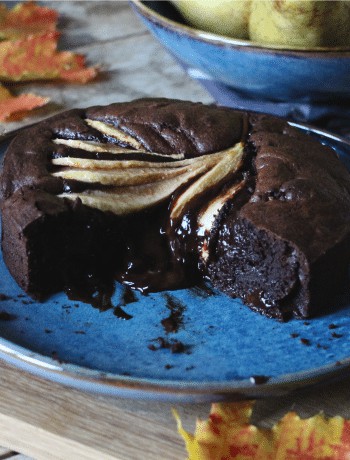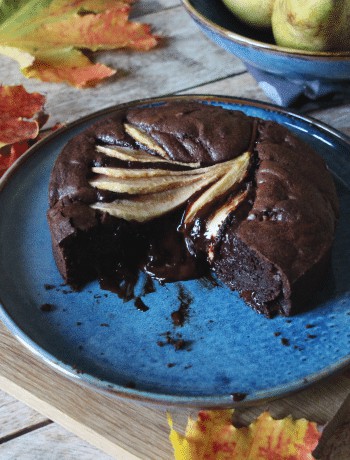 La préparation vous prendra une quinzaine de minutes, pas beaucoup plus, et ensuite on va cuire ce coulant chocolat poire à une température assez douce (160 degrés) pour avoir une belle tenue du gâteau tout en ayant ce cœur coulant trop trop bon !!