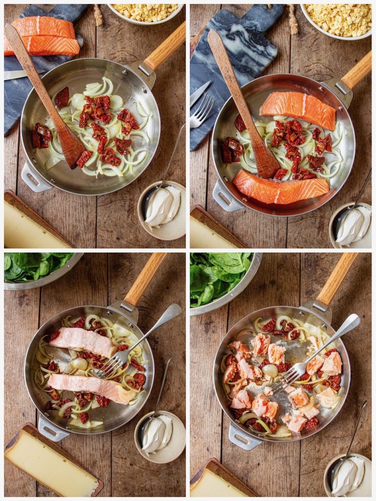 Revenons à notre recette de crozets aux épinards, saumon et tomates séchées !
