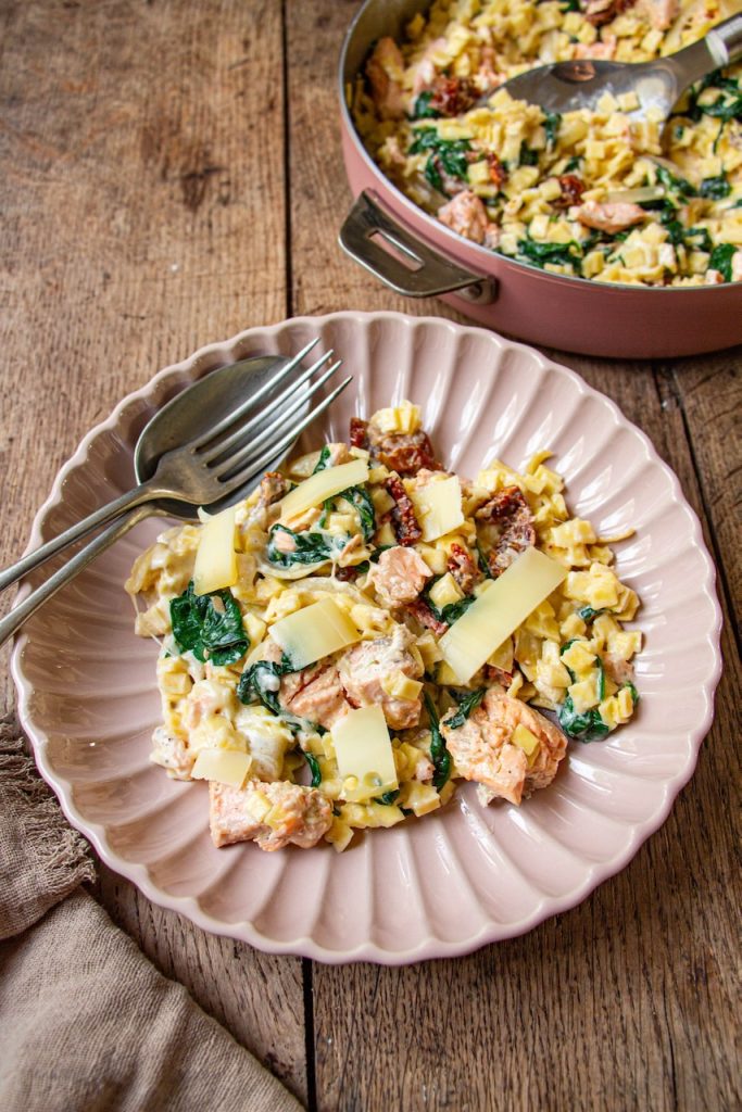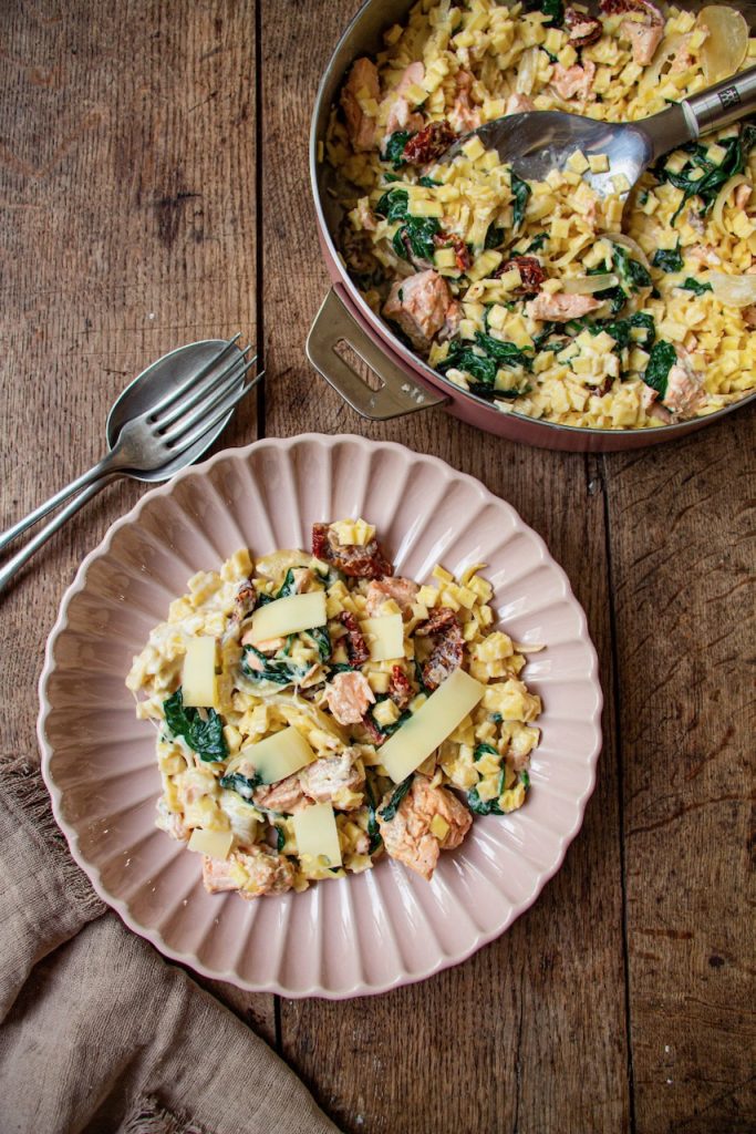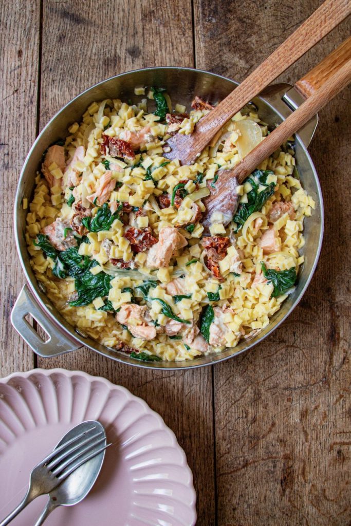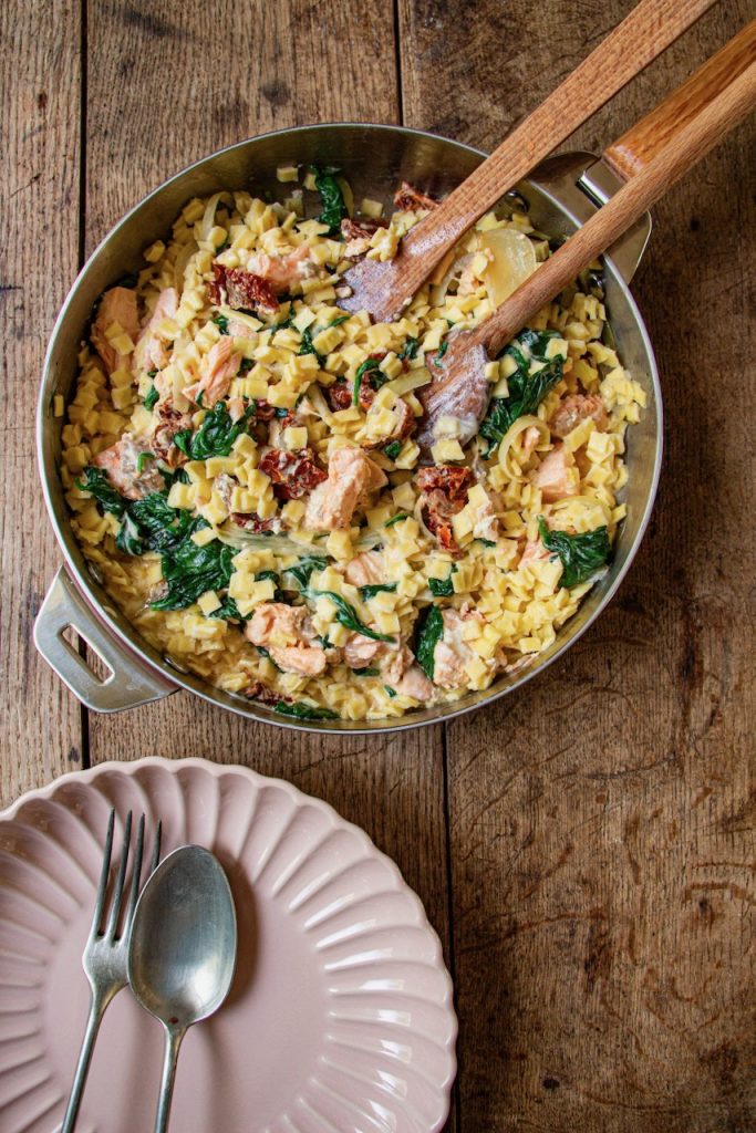 Oui, ça va devenir votre plat chouchou… Voici donc mes crozets aux épinards, saumon et tomates séchées !