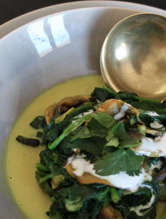 Aujourd’hui ce sera curry d’épinards et champignons de Paris !