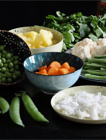 Mon seul conseil pour un bon curry de légumes est la cuisson des légumes : commencez par les légumes les plus longs à cuire, puis les autres et ensuite n’hésitez pas à laisser mijoter à feu très doux. Vos légumes se tiendront bien tout en étant fondants en bouche.