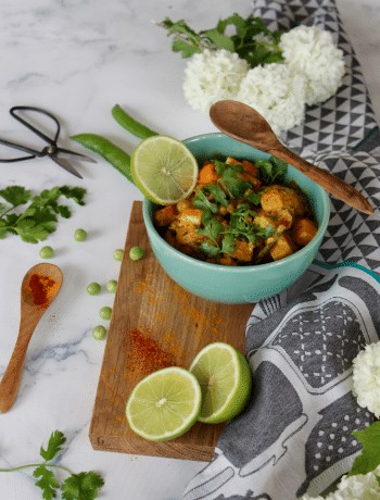 J’ai l’habitude de le faire en tant que plat unique mais ce curry de légumes pourra aussi faire office d’accompagnement avec du riz, des pâtes, une viande ou un poisson grillé.