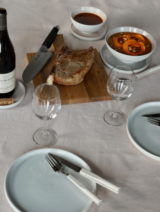 Et pour sublimer tout ça votre double côte de veau, sauce aux fruits rouges…