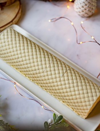 Je vous donne ici le déroulé de la recette pour la réalisation d’une bûche, réalisée la gouttière à bûche De Buyer de 30 cm. Vous aurez peut-être un peu de préparation à la vanille en trop. Dans ce cas, je vous conseille de vous équiper d’une petite cuillère et de vous régaler avec le reste ! 😉