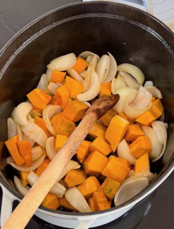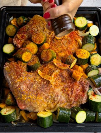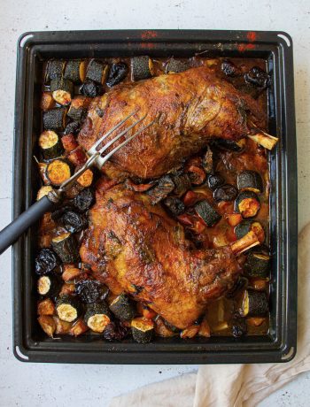 Ici, j’ai réalisé cette recette avec du potimarron et de la courgette. Vous pourrez adapter l’épaule d’agneau aux pruneaux façon tajine avec les légumes de saison que vous avez sous la main : butternut, carotte, navet, pomme de terre, etc.