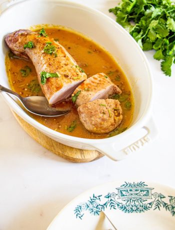 Il s’agit de mon filet mignon de porc miel et coriandre que je fais donc depuis des années, et toujours avec succès…