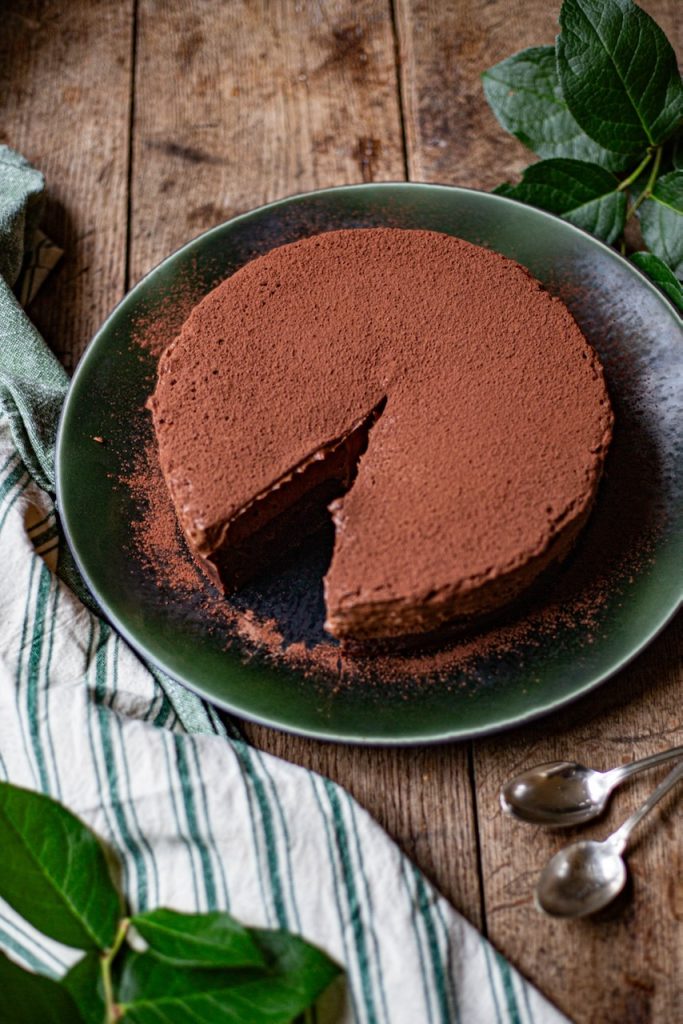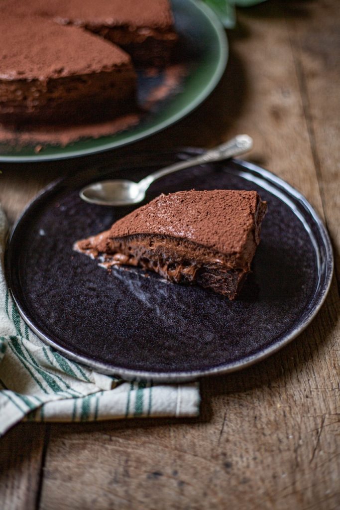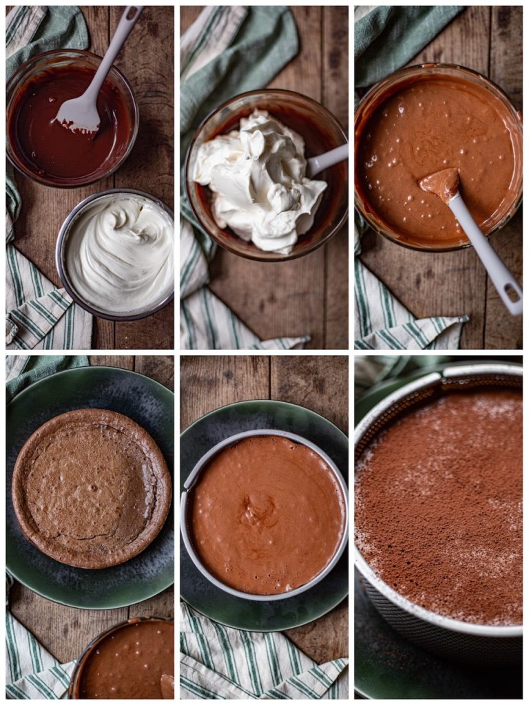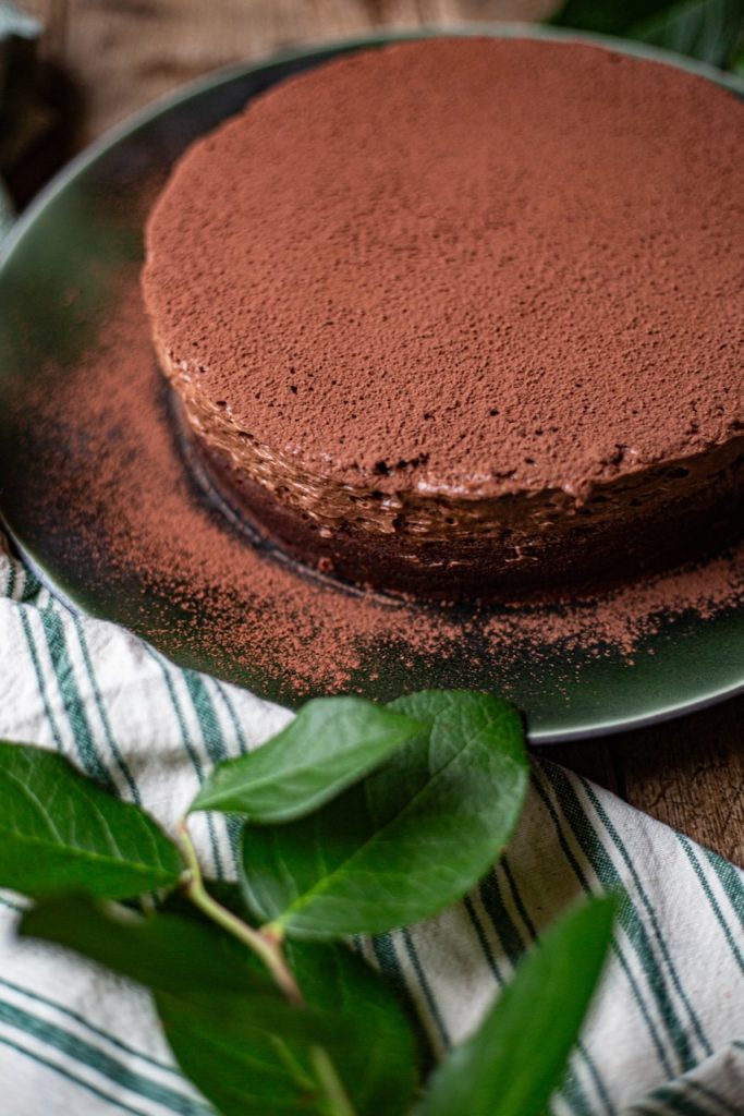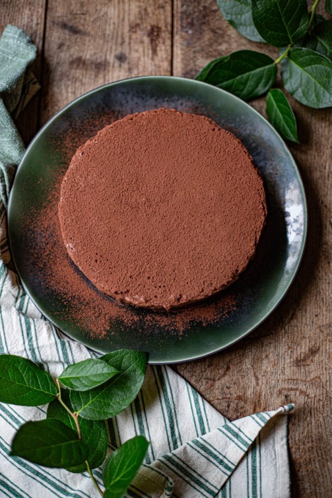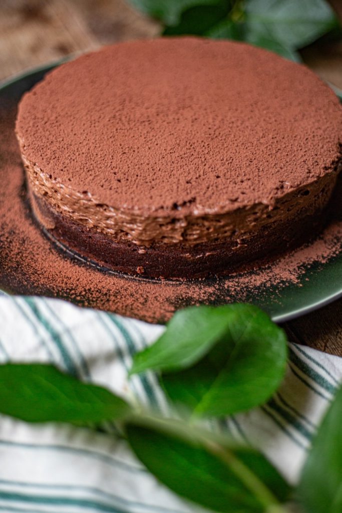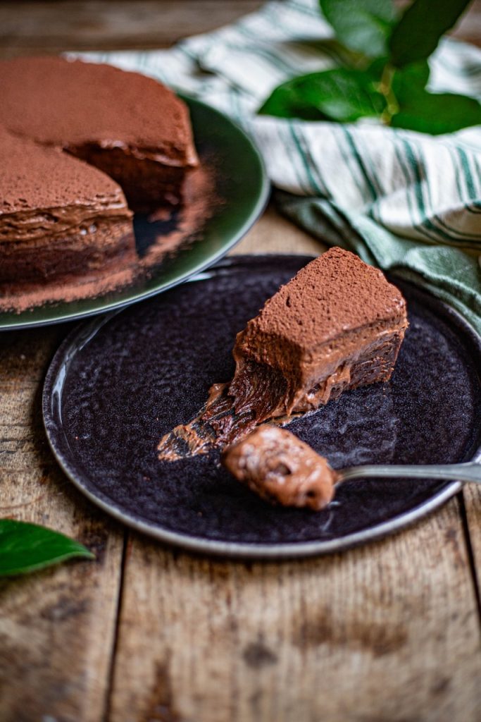 Le Chef prévoit du chocolat râpé sur le dessus du gâteau. J’ai préféré le cacao non sucré dont l’amertume va contrebalancer la richesse du fondant mousse tout chocolat.