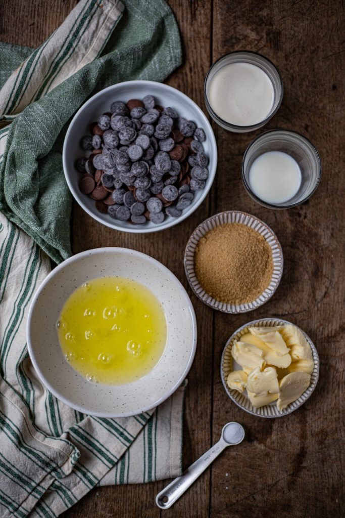 Versez le liquide bien chaud sur le chocolat et le beurre. Laissez poser 1 minute puis mélangez.