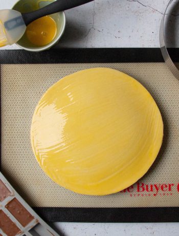 Retirez l'excédent de pâte, déposez un tapis de cuisson sur la galette et retournez-la.