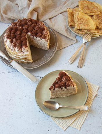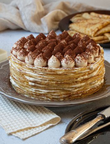 Je suis tellement excitée de partager avec vous cette recette de gâteau crêpes tiramisu qui a fait chavirer mon cœur. En combinant la légèreté des crêpes avec la richesse du tiramisu, j’ai créé un dessert qui est tout simplement irrésistible. En parlant de crêpes, si vous cherchez une autre façon de les déguster, je vous recommande vivement mes Crêpes, Poire aux Agrumes, Sabayon à l’Orange, un vrai délice ! Et pour ceux qui aiment les desserts roulés, n’oubliez pas d’essayer mon Tiramisu roulé, qui est tout aussi gourmand. En plus, si vous êtes fan de beignets, vous allez adorer mes Beignets « Boules de Berlin », qui apportent une touche très gourmande à n’importe quel goûter. Alors, préparez-vous à épater vos invités avec ce gâteau crêpes tiramisu, et n’hésitez pas à explorer d’autres recettes comme mes Makis de Crêpes aux Fruits ou même ma Bûche Tiramisu de Noël pour les fêtes !