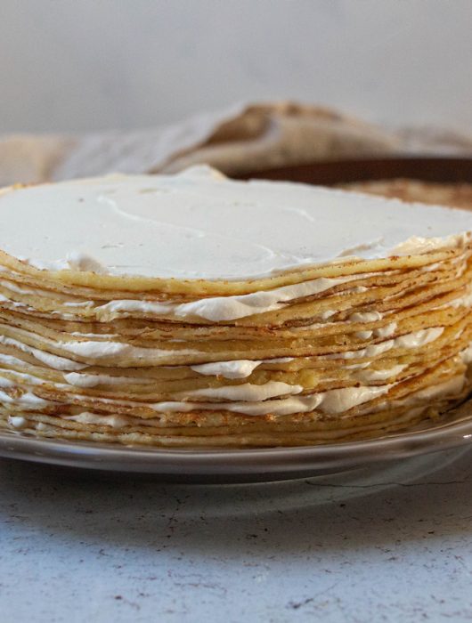 Alors vous avez déjà deviné que les deux recettes en question sont les crêpes et le tiramisu, le titre de la recette « gâteau crêpes tiramisu » a dû vous mettre sur la voie… 😉 Pour autant, ce n’est pas pour autant une simple addition de deux recettes. Non… j’y ai mis un peu de matière grise pour vous proposer un gâteau gourmand, de bonne taille et qui se tienne bien. Il ne faudrait pas que le gâteau crêpes tiramisu se transforme en Tour de Pise !!