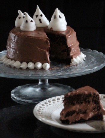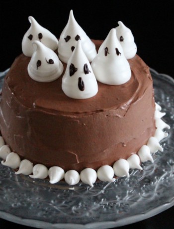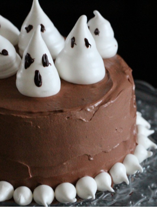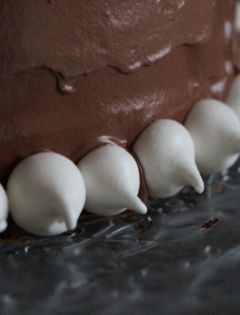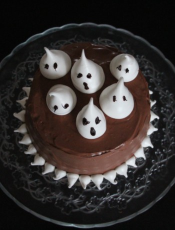 Pour finir, vous allez décorer vos meringues d’yeux ou autres éléments terrifiants !! Disposez sur le gâteau et réservez au frais avant de servir.