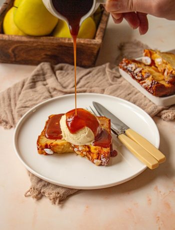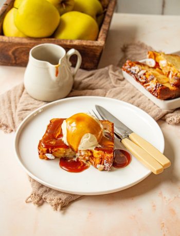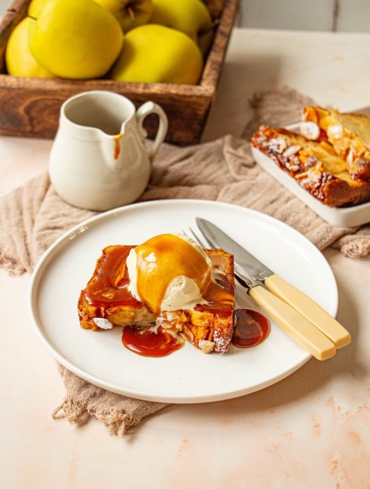 Vous pourrez l’agrémenter d’amandes effilées ou de noisettes coupées grossièrement pour avoir un petit côté croquant. Accompagné de caramel au beurre salé ou de glace vanille ou les deux, ce sera un dessert mémorable.