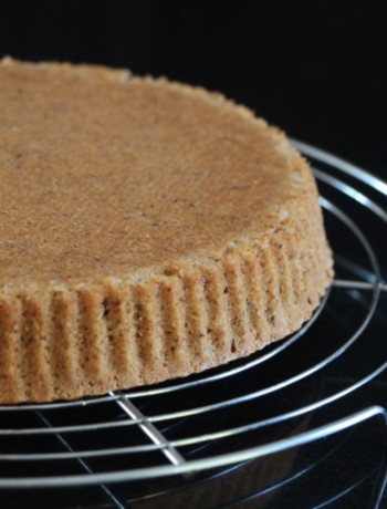 J’ai donc réalisé un biscuit aux noisettes torréfiées en m’inspirant d’une recette de Philippe Conticini, issue de son livre « Gâteaux et Gourmandises sans sucre ». J’ai dû y faire quelques ajustements, vu que j’avais également la contrainte de ne pas utiliser de beurre …