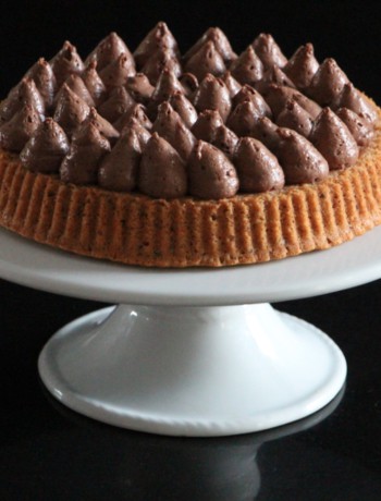 Quand votre biscuit est froid, réalisez un pochage de mousse au chocolat à l'aide d'un poche à douille et une douille ronde de diamètre 10.