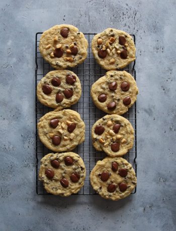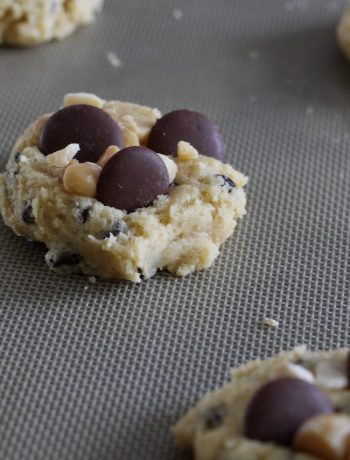 Le point clé sera la cuisson pour cette recette. D’une part, prévoyez deux plaques recouvertes d’un tapis de cuisson ou d’une feuille de cuisson. Vous espacerez bien vos cookies car ils vont s’étaler … Et puis, vous arrêterez la cuisson même si ils ne vous semblent pas cuits. Ils doivent être presque mou au centre et plus durs sur les bords après refroidissement. Selon les fours, ce sera entre 18 et 20 minutes, pas plus !