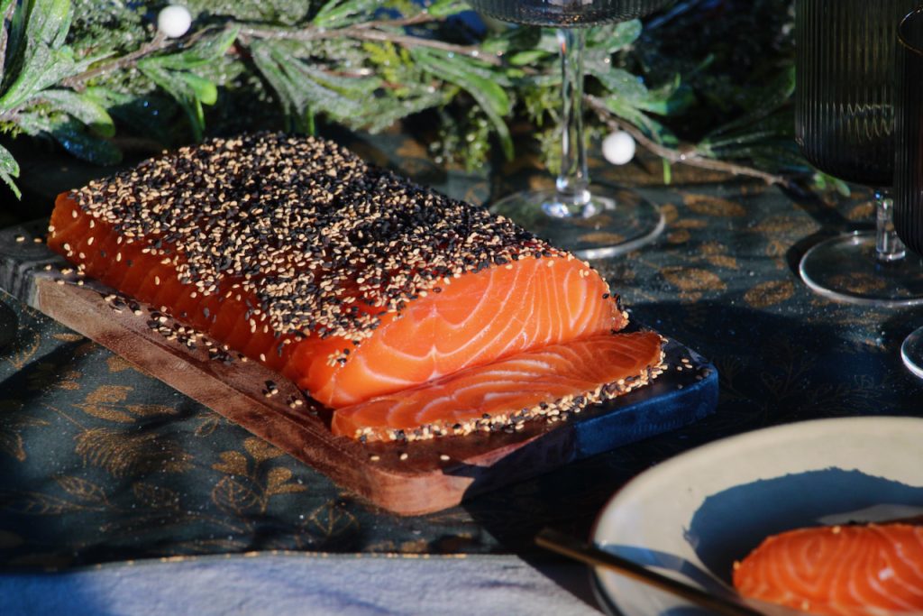 Here’s Gravlax Salmon with Pomegranate Molasses.