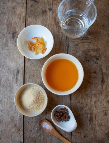 Versez par-dessus le sirop à travers une chinois étamine. Récupérez l'anis étoile et les écorces pour la déco final de votre pain d'épices.