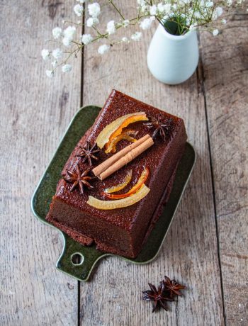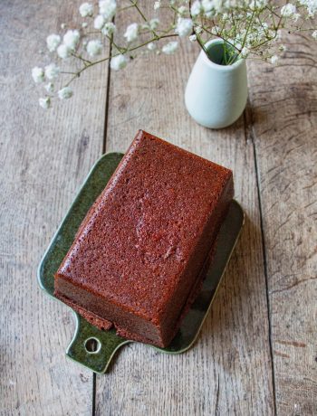 Et pour finir, la recette initiale prévoit un glaçage avec de la marmelade d’orange : je n’en avais pas et j’ai donc opté pour de la gelée de coing. Une confiture de mirabelle ou d’abricot conviendra également.