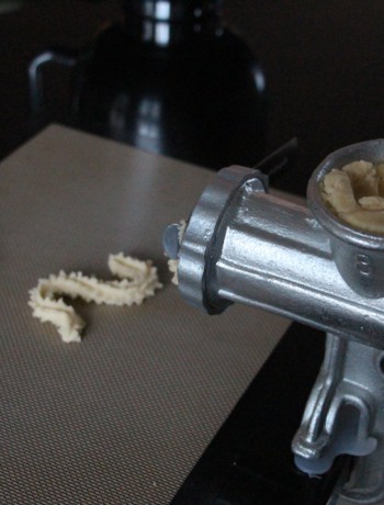 Avant de démarrer cette recette, je vais être honnête avec vous et vous dire que le façonnage des « S » sera vraiment facilité par l’utilisation d’un hachoir manuel ou du hachoir de certains robots de cuisine. A la poche à douille, c’est du sport !!