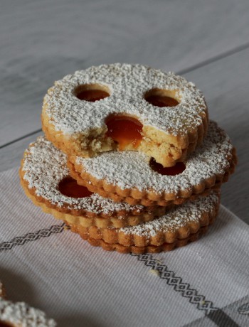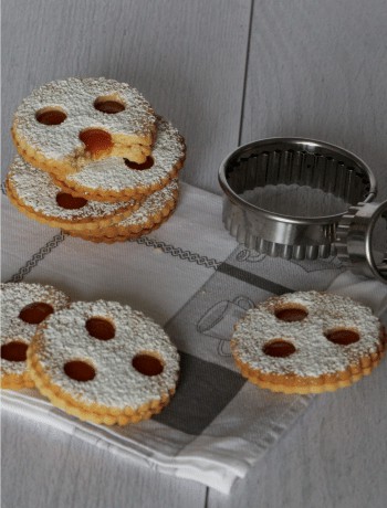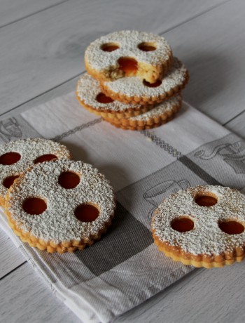 L’avantage avec ces lunettes à la confiture, c’est que c’est un bon goûter, nourrissant et que vous pouvez en préparer en quantité puisque ces biscuits se gardent plusieurs semaines dans une boîte en métal. Chez moi, ça ne tient pas plus de 2 ou 3 jours … (la recette ici permet de réaliser une vingtaine de pièces de 10-12 cm)