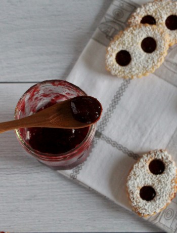 On va donc réaliser un biscuit sablé à l’amande (vous pourrez opter pour une version à la noisette si vous préférez) qu’on garnira de confiture. J’ai fait mes stocks de pots de confiture de framboises et d’abricots cet été … Je suis parée …