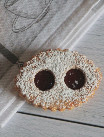 Mélangez les poudres (farine, poudre d'amande, sel, sucre glace) et la vanille. Ajoutez le beurre mou en morceaux et mélangez jusqu'à obtenir un mélange sablonneux. Ajoutez l’œuf entier et le jaune d’œuf. Dès que le mélange est homogène, arrêtez de mixer et réservez pendant au moins 1h30 au réfrigérateur (mettez votre pâte en boule dans un film alimentaire). Au bout de ce temps, préchauffez votre four à 175 degrés. Étalez la pâte, faites vos formes (la moitié avec 2-3 trous au milieu) et déposez-les sur un tapis silicone ou un papier alimentaire. Faites cuire 13 à 15 minutes puis faites refroidir sur une grille. Quand les biscuits sont froids, garnissez les biscuits "non troués" de confiture. Saupoudrez "les troués" de sucre glace. Assemblez finalement vos lunettes. Ces gâteaux se conservent plusieurs semaines dans une boîte en métal.