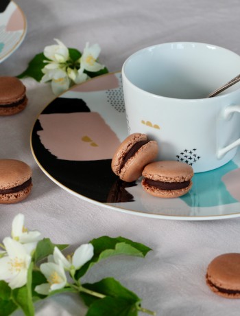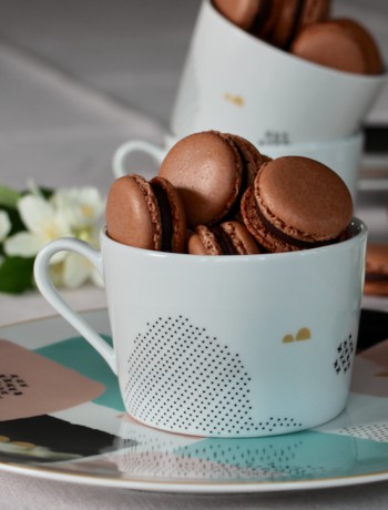 Vous l’aurez compris, mes macarons au chocolat viennent de la recette de Pierre Hermé, avec un ajustement du temps de cuisson (quand on met du chocolat en poudre dans la pâte il faut cuire un peu plus longtemps) et une ganache ultra chocolat !!