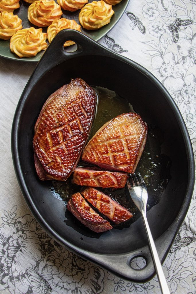 Aujourd’hui encore, ce n’est pas un réflexe au quotidien. Mais, quand vient la période des fêtes, je pense tout de suite au canard ! Et je suis sûre que vous ne serez pas déçu par mes magrets de canard à l’orange !
